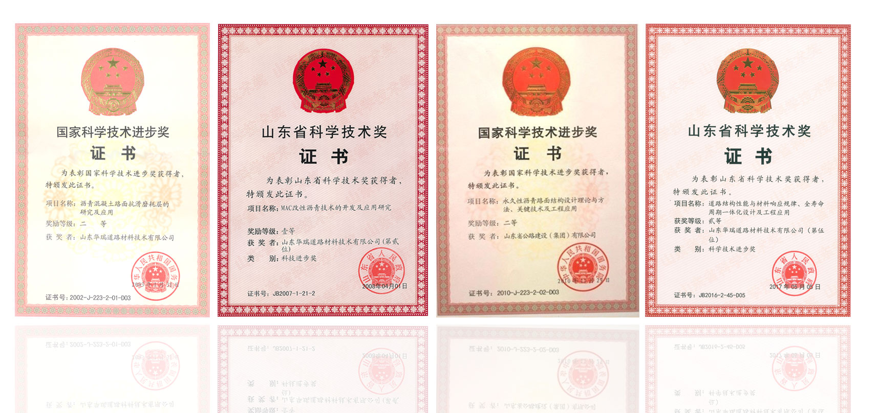 3、以MAC改性瀝青大碎石柔性基層為核心內(nèi)容之一的中美合作項(xiàng)目《永久性瀝青路面設(shè)計(jì)方法研究》榮獲2009年度山東省科技進(jìn)步一等獎(jiǎng),2010年度國(guó)家科技進(jìn)步二等獎(jiǎng)。