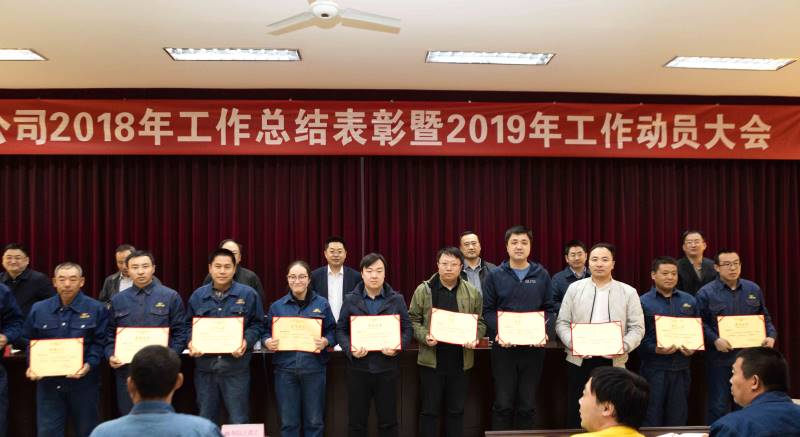 會(huì)上,對(duì)2018年度先進(jìn)進(jìn)行表彰,公司高管為獲獎(jiǎng)?wù)哳C獎(jiǎng),并與他們合影留念。