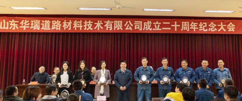 在熱烈掌聲中,與會領導分別向榮獲公司15年、10年以上榮譽員工頒發(fā)獎杯,并向全體員工頒發(fā)二十周年紀念品。