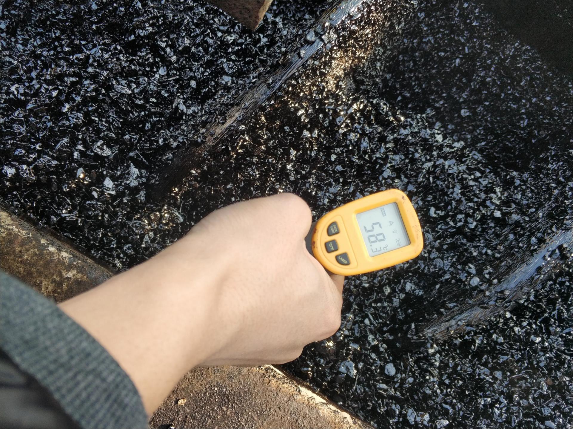 當(dāng)天施工時(shí)氣溫僅有3~5℃并伴有大風(fēng),普通熱拌瀝青已不允許施工。 但我公司新一代MAC冷拌瀝青混合料僅對(duì)石子稍微加熱,出料溫度50~60℃,完全滿(mǎn)足拌和、攤鋪、碾壓各工序?qū)Φ蜏睾鸵仔缘囊蟆?路面碾壓成型降至接近氣溫后即具有較高的強(qiáng)度,可立即開(kāi)放交通。 采用的開(kāi)級(jí)配混合料為骨架嵌擠結(jié)構(gòu),承載力高,不易變形,易于施工控制,節(jié)省石料和瀝青。 現(xiàn)場(chǎng)觀摩的交通局領(lǐng)導(dǎo)、外國(guó)專(zhuān)家和施工單位對(duì)MAC冷拌瀝青混合料的低溫施工性能和路面強(qiáng)度一致認(rèn)可,并給予較高評(píng)價(jià)。