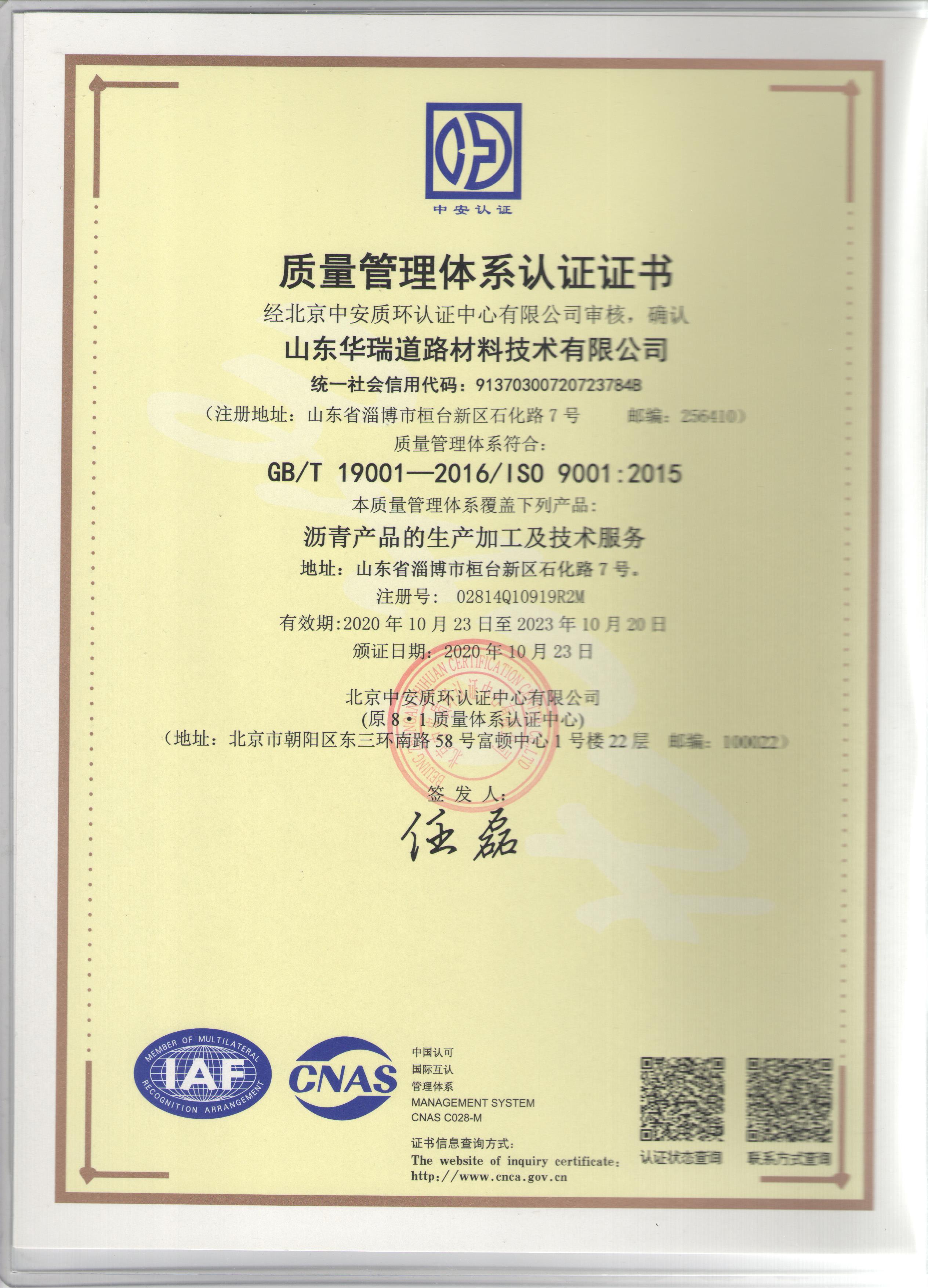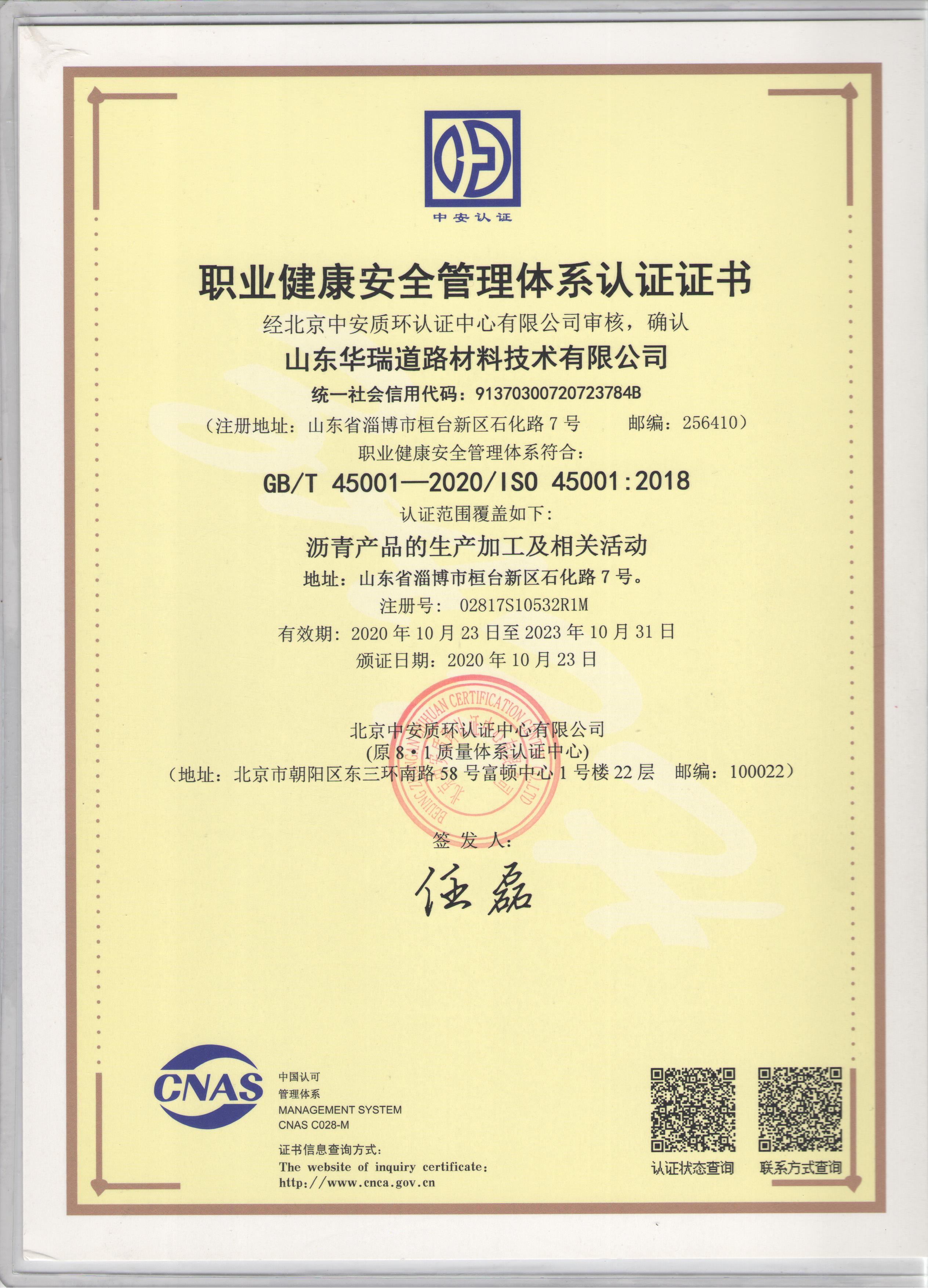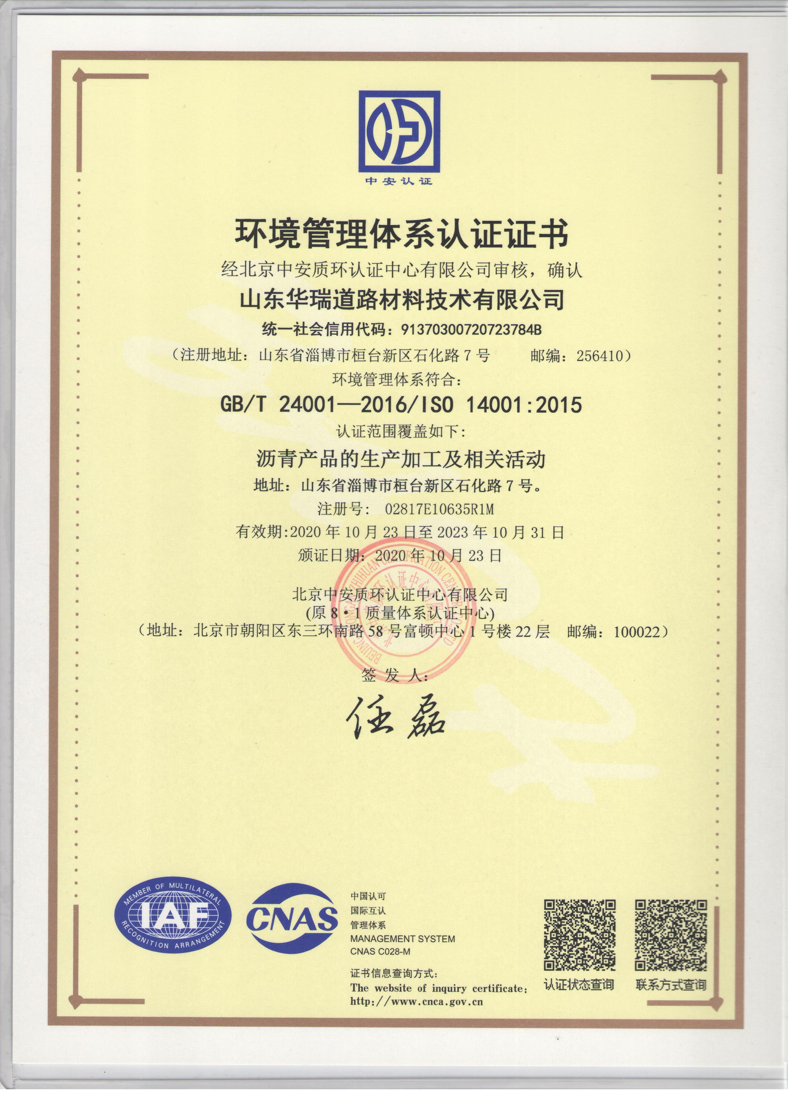 10月25日,公司收到了認證中心核發(fā)的三標體系認證證書。