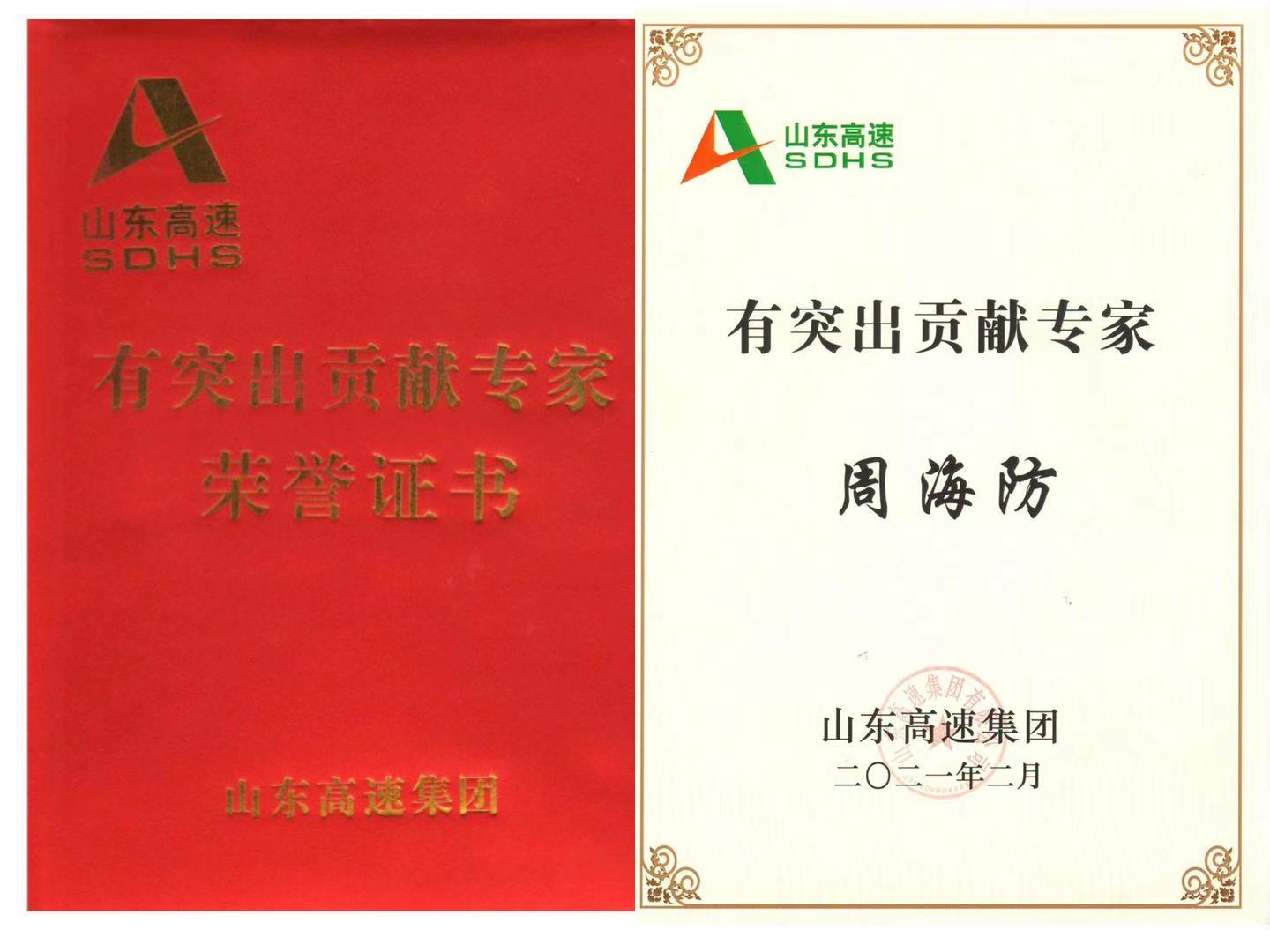 近日,在山東高速集團(tuán)召開(kāi)的一屆二次職工(會(huì)員)代表大會(huì)暨2021年度工作會(huì)議上,公司副總經(jīng)理周海防同志被授予2020年度“山東高速有突出貢獻(xiàn)專家”榮譽(yù)稱號(hào)。山東高速有突出貢獻(xiàn)專家是集團(tuán)公司設(shè)立的專業(yè)技術(shù)人才專項(xiàng)榮譽(yù),選拔對(duì)象是長(zhǎng)期在專業(yè)技術(shù)崗位上工作,為集團(tuán)公司發(fā)展做出突出貢獻(xiàn)的專業(yè)技術(shù)人才。