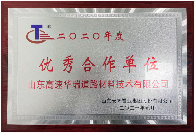近日,華瑞公司喜獲山東天齊置業(yè)集團(tuán)有限公司2020年度“優(yōu)秀合作單位”榮譽(yù)稱號。山東天齊置業(yè)集團(tuán)股份有限公司在完成與威海市市政工程有限公司整合后,在威海市市政建設(shè)領(lǐng)域發(fā)揮著舉足輕重的作用。