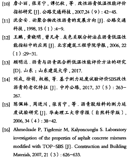 瀝青路面憑借修建、養(yǎng)護(hù)周期短,路面平整,行車舒適等優(yōu)勢被廣泛應(yīng)用于道路建設(shè)。然而,部分地區(qū)冬季嚴(yán)寒(最低溫度達(dá)-30℃以下),低溫持續(xù)時(shí)間長,雨雪天氣頻繁,致使瀝青路面受凍產(chǎn)生疲勞裂縫;此外,較大的晝夜溫差使得路表變溫顯著,產(chǎn)生溫縮裂縫,嚴(yán)重縮短了路面的使用壽命。在瀝青中加入聚合物,借助聚合物本身的結(jié)構(gòu)特性或聚合物與瀝青間的相互作用,有助于提高瀝青材料的軟化點(diǎn),降低其脆化溫度,同時(shí)提高路面的耐久性能。