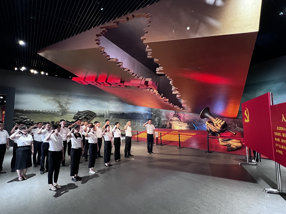 全體黨員在講解員的引導(dǎo)下,了解濟(jì)南戰(zhàn)役的全過程,回顧解放戰(zhàn)爭波瀾壯闊的歷史進(jìn)程,從“合戰(zhàn)博弈 齊魯硝煙”到“八天八夜 鏖戰(zhàn)古城”,再從“接管濟(jì)南 泉城新生”到“烈士忠魂 日月同輝”,一個個生動形象的故事,令大家深刻感受到了一代又一代共產(chǎn)黨人艱苦奮斗、不怕犧牲的革命精神,和不忘初心、奮勇前進(jìn)的歷史擔(dān)當(dāng)。參觀結(jié)束后,全體黨員面對莊嚴(yán)的黨旗重溫入黨誓詞,并一同前往烈士陵園進(jìn)行祭掃。
